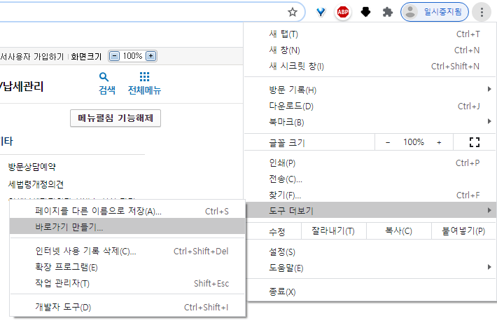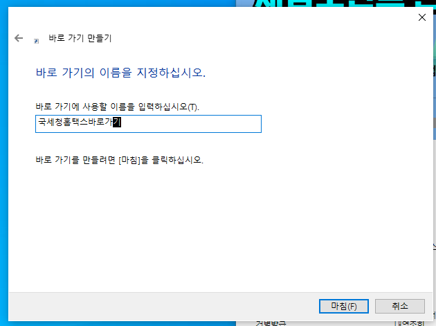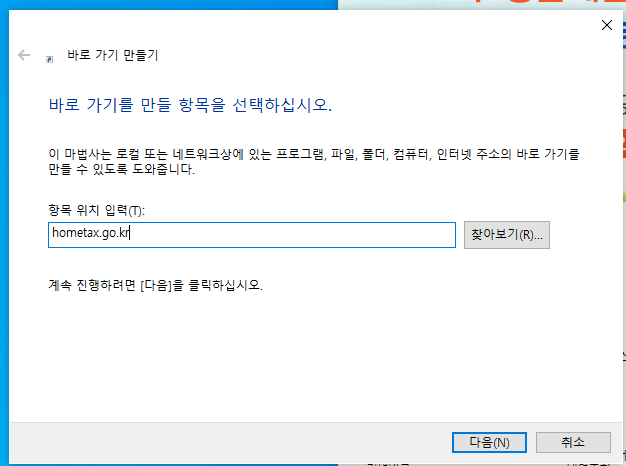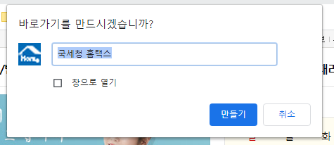 국세청 홈택스 홈페이지 바탕화면에 바로가기 만들기