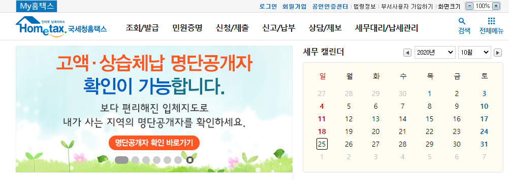 국세청 홈택스 홈페이지 바로가기