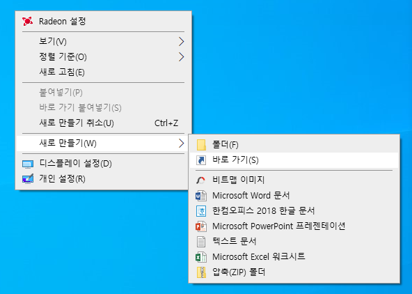 우선 첫번째 방법은 바탕화면 빈곳에 마우스 오른쪽 버튼을 클릭하여 새로만들기를 찾아 클릭 후 바로가기를 눌러주시면 됩니다. 그러면 바로가기 만들기가 팝업창이 뜨고 항목위치 입력에 홈택스 주소를 넣고 다음버튼을 누른 후 원하는 이름을 입력 후 마침을 누르시면 됩니다.