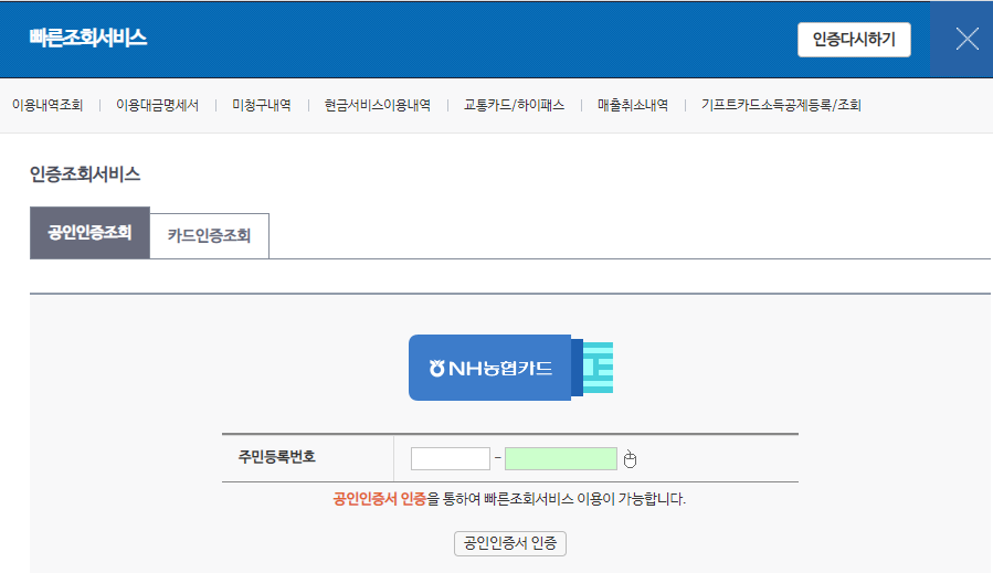 그 후 로그인을 해서 여러가지 농협카드 홈페이지 서비스를 이용하기 위해서는 꼭 필요한 절차이니 로그인도 해주시길 바랍니다. 간혹 서비스중에 공인인증서가 필요한 서비스도 많이 있으니 공인인증서를 등록하시고 공인인증서로 로그인하시는 것을 추천드립니다.