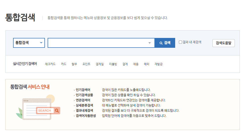 홈페이지에서 찾고계신걸 찾기 어려우시면 홈페이지 맨 오른쪽에 빠른조회와 통합검색 고객센터등의 서비스가 준비되어 있으니 검색을 하셔서 이용하시는 것도 좋을 것같습니다.