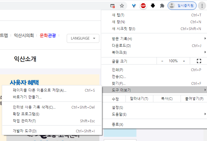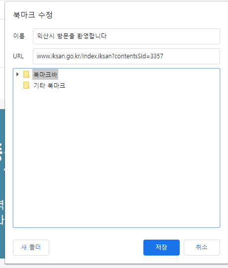 북마크에 익산시 홈페이지 바로가기 만들기