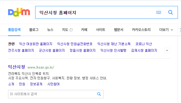 인터넷 검색창에 익산시청 검색해서 바로가기