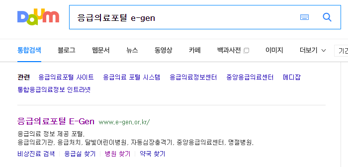 인터넷 검색창에 응급의료포털을 검색하시거나 위에 있는 사이트 링크를 통해서 응급의료포털 E-Gen 사이트에 접속해 주세요.