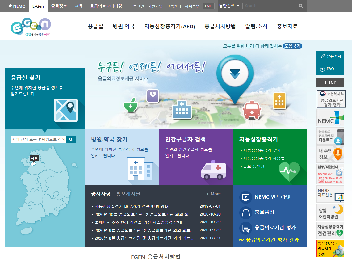 응급의료포털 사이트 둘러보기