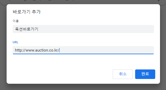 5)크롬 시작화면에 옥션바로가기 만들기