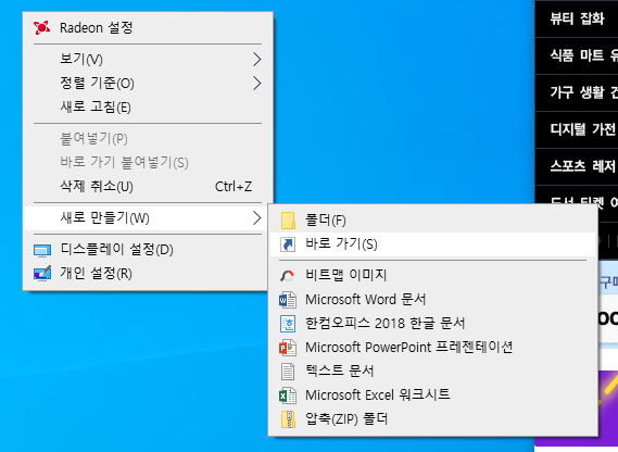 1)바탕화면에서 바로가기 만들기