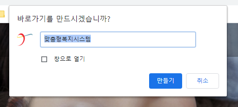맞춤형 복지포탈 홈페이지 바탕화면에 바로가기 만들기