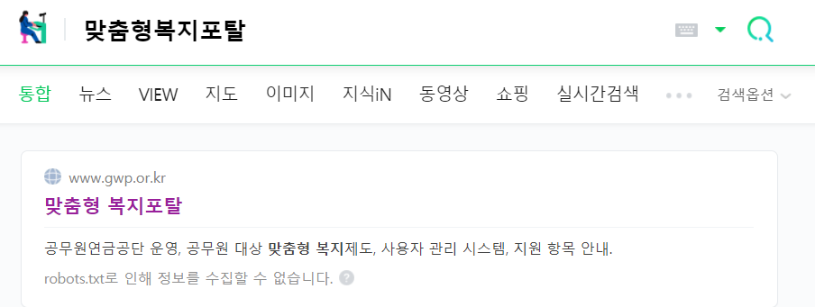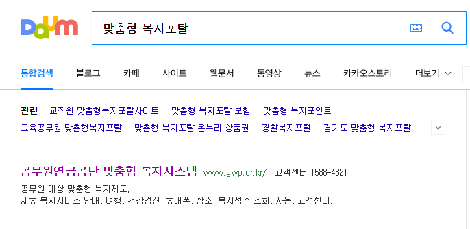 맞춤형 복지포탈 홈페이지 검색해서 바로가기