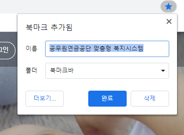 맞춤형 복지포탈 홈페이지 북마크바에 만들기