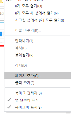 만약 별모양을 찾지 못하셨다면 북마크바에 마우스 오른쪽 버튼을 클릭해서 페이지추가를 눌러서 저장을 하시면 북마크바에 복지포탈 홈페이지 바로가기를 생성하는 방법도 있습니다.