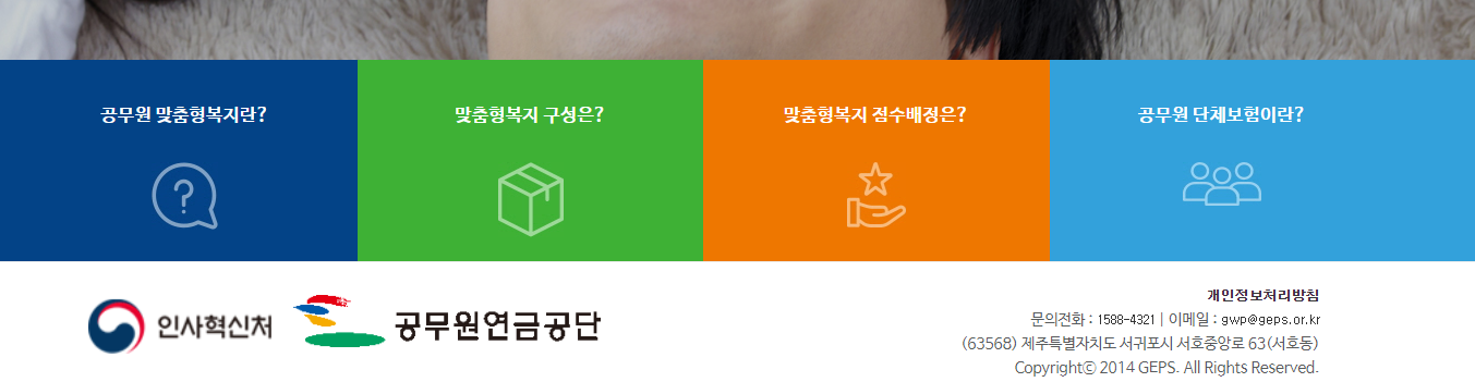 공무원 연금에 가입되어있는 공무원을 대상으로하는 복지서비스인 복지포인트는 공무원 연금공단에서 제공하던 복지서비스를 한군대에 모아서 이용할 수있는 맞춤형 복지포탈 사이트가있습니다. 그럼 맞춤형 복지포탈 홈페이지 바로가기 방법에 대해 알아보겠습니다.