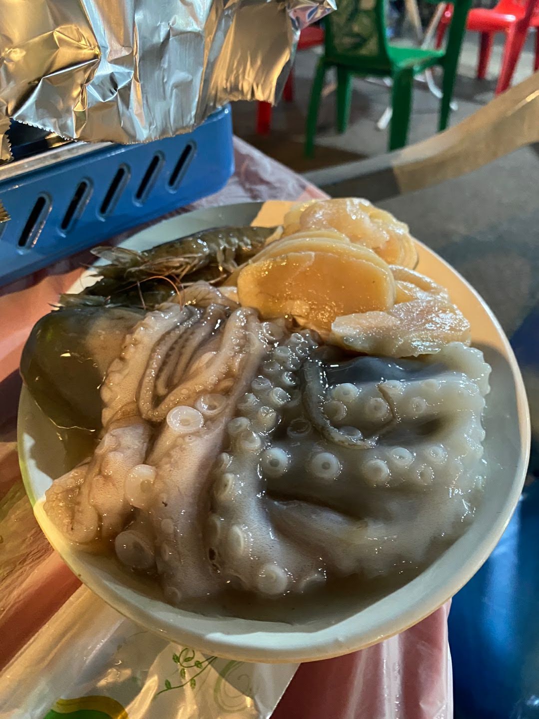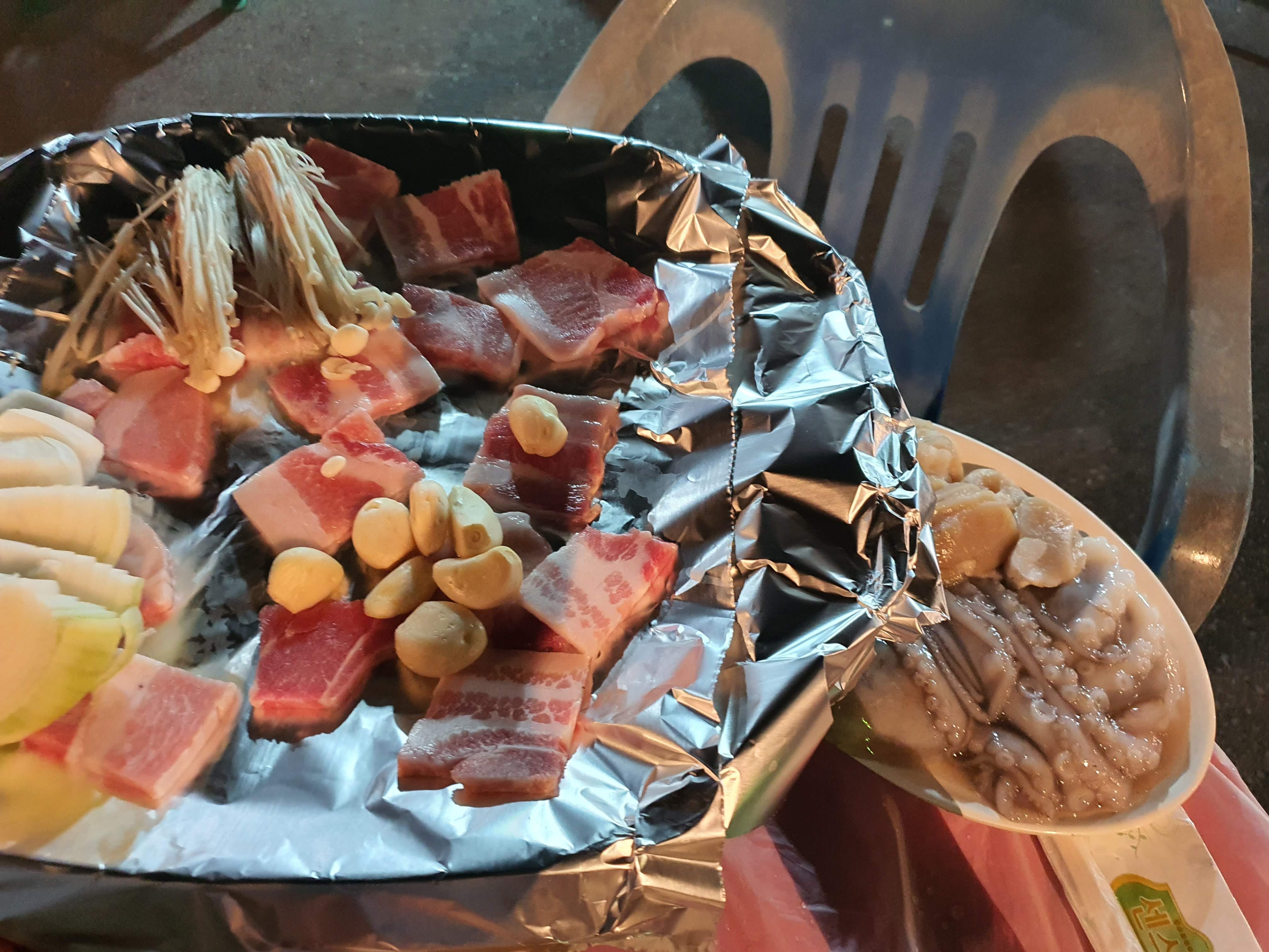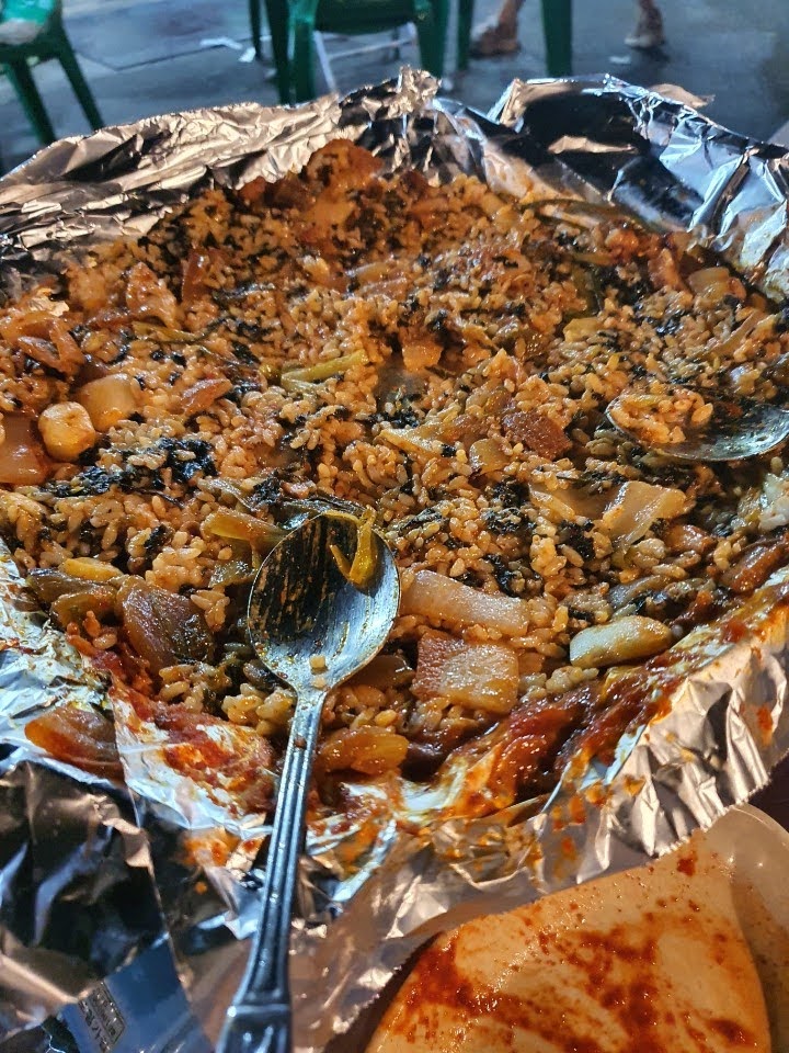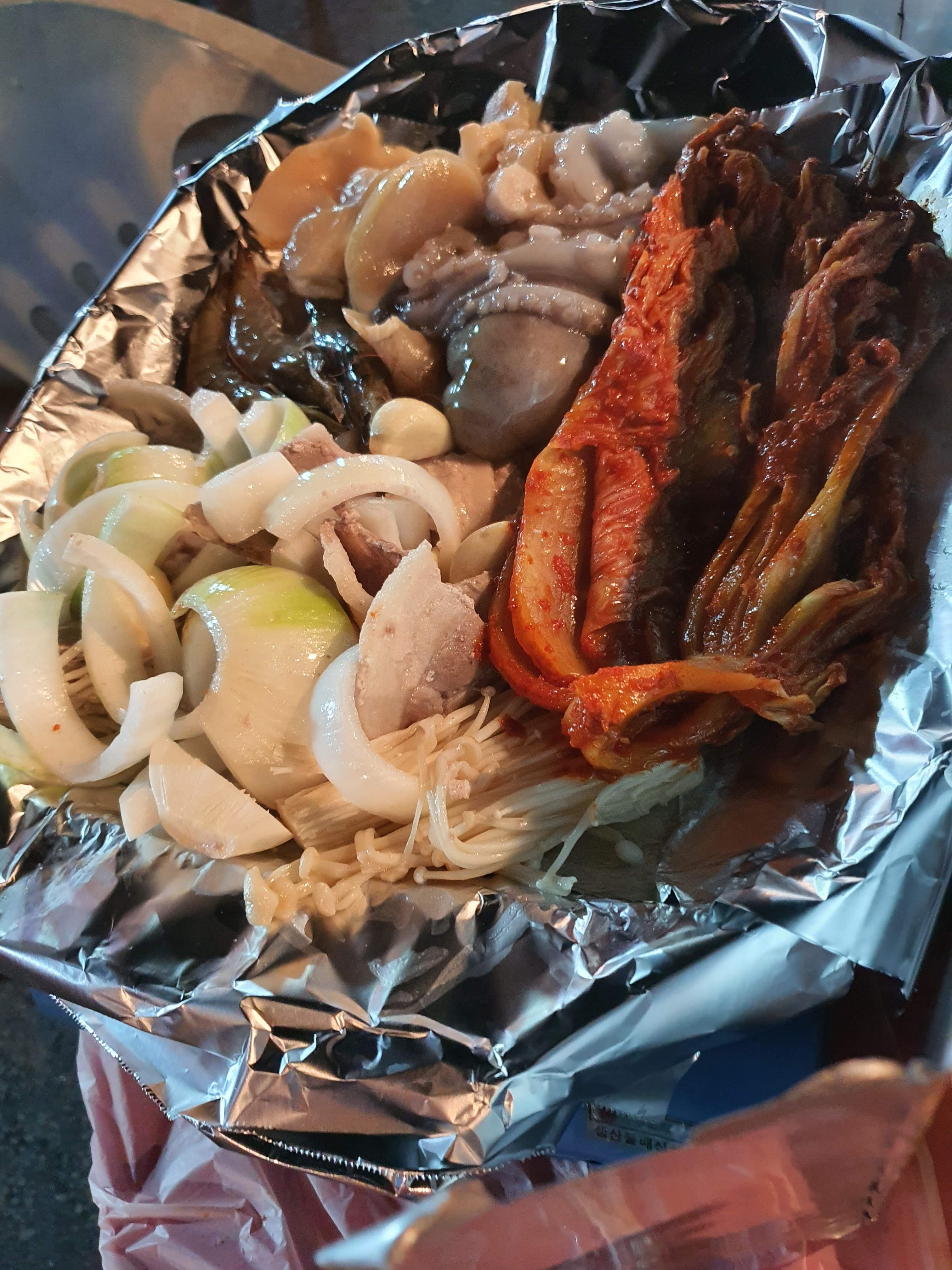 야외 테이블에 자리를 잡고 앉아서 여수삼합과 소주를 주문했더니 나온 여수삼합! 갓김치와 묵은지가 눈길을 끌었고 삼겹살에 싱싱해보이는 해산물들까지 양이 적어보이지만 둘이서 먹기엔 충분했고 너무너무 맛있어서 저걸로만 소주를 몇병을 마셨는지.. 볶음밥먹을때쯤엔 거의 만취상태였음에도 양념이 너무 맛있어서 볶음밥은 꼭 먹어야된다고 주문해서 마무리까지 잘하고 왔습니다! 진짜진짜 맛있어서 추천드리고 싶습니다!